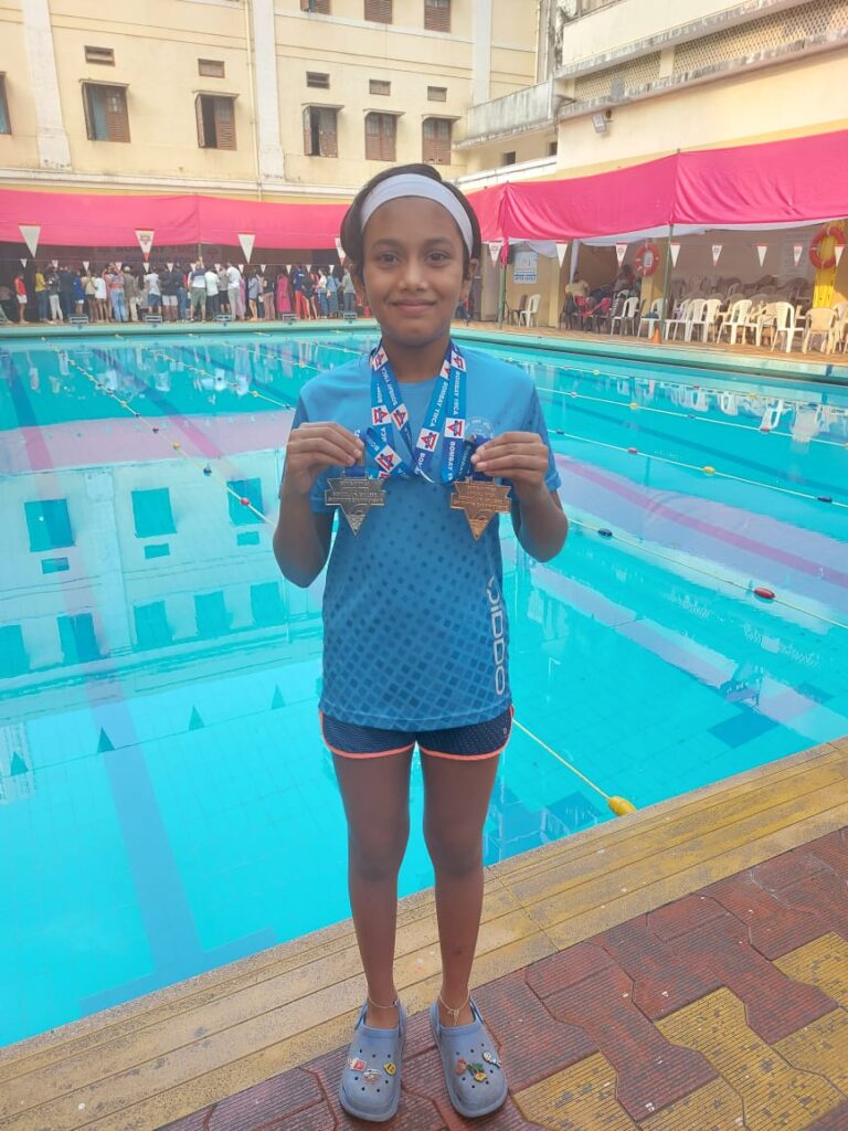 Aarya secured a silver medal in the 50m Freestyle with an impressive time of 34.56 seconds and clinched a bronze medal in the 50m Butterfly event, finishing at 39.97 seconds.