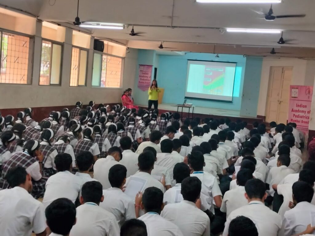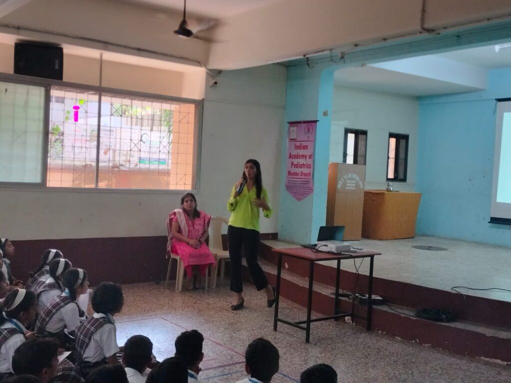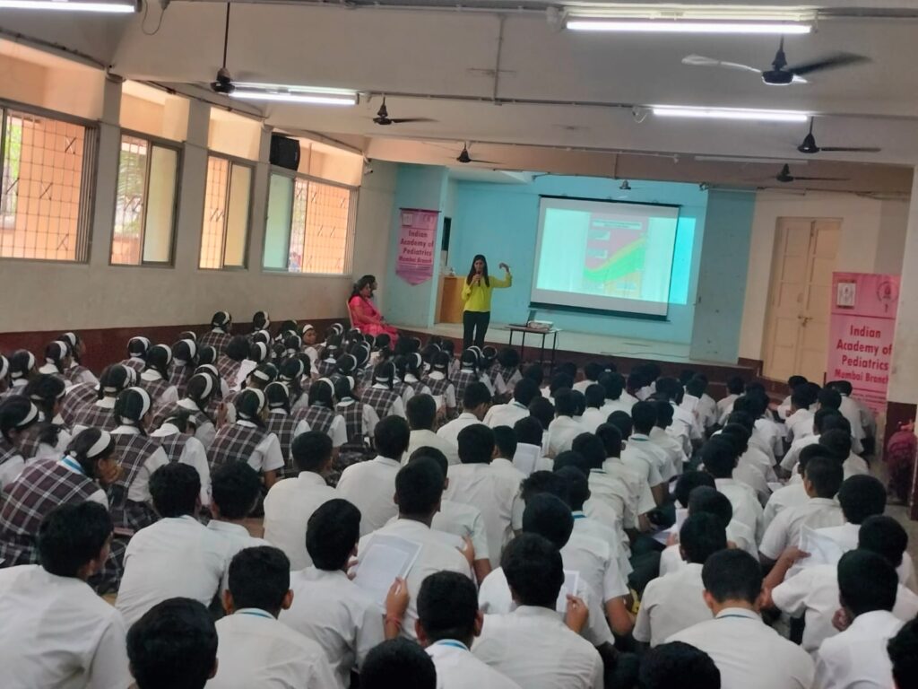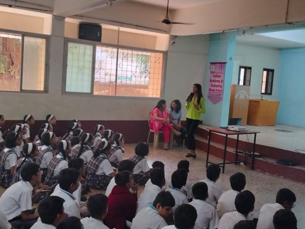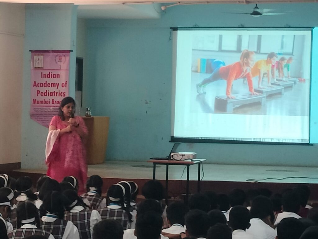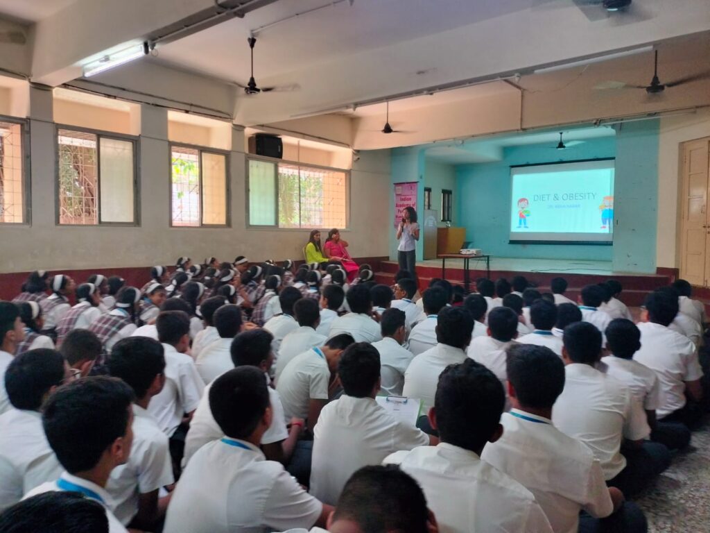 To make students aware of the dangers of obesity and measures to tackle it, a talk was organized by three Pediatricians from the Indian Academy of Pediatrics. Dr. Amruta Shirodkar spoke to the students about the various causes that lead to obesity in young adults. Dr. Sikha Agarwal explained the importance of good bone health and physical exercise during the growing up years. Dr. Neha Nabar elaborated on the need to think and eat wisely.