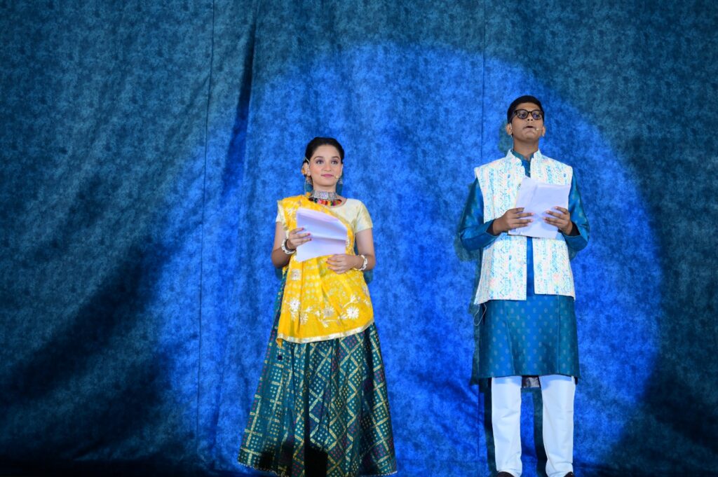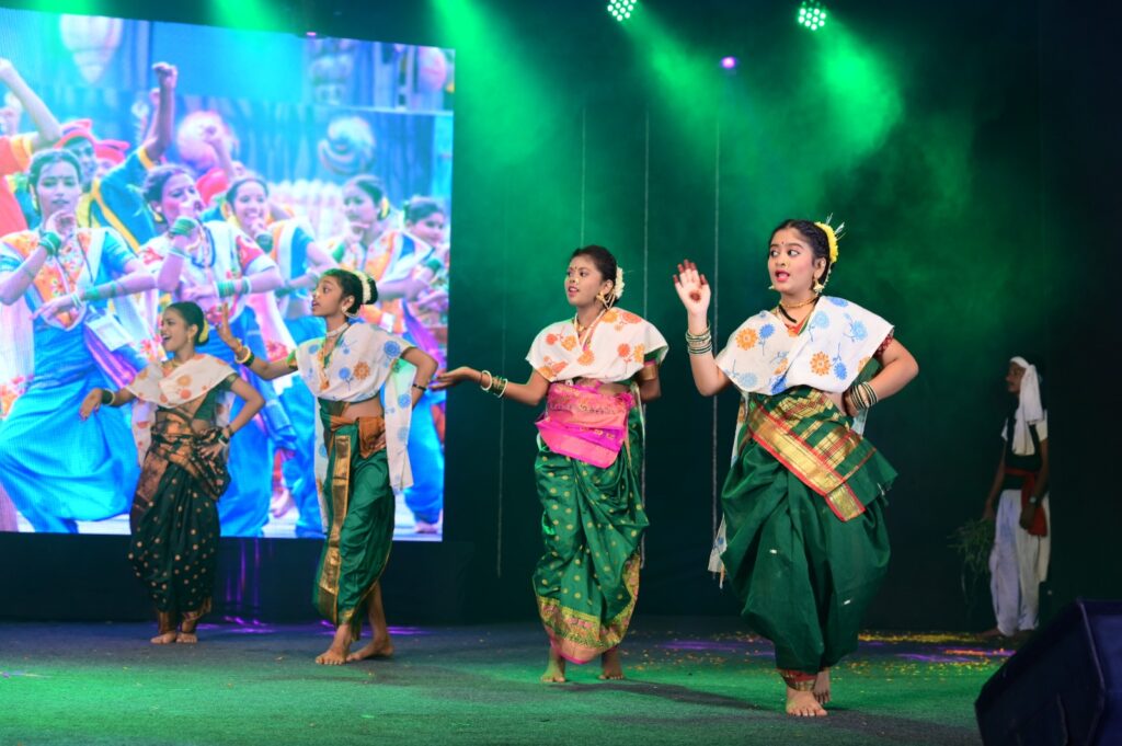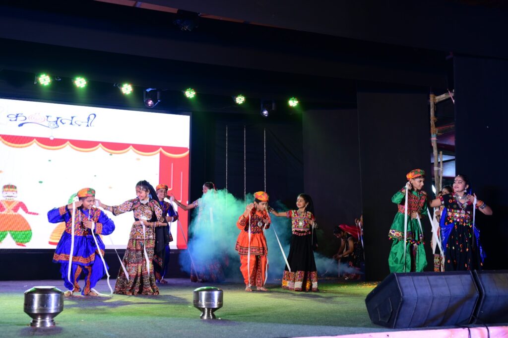 The cultural programme commenced with a soulful Saraswati Vandana, followed by a graceful Ganpati dance. The programme featured a wide range of performances, including musical and instrumental presentations, an award-winning science-based drama, a mono-acting performance, and energetic dance items presented by the students. The folk dance segment beautifully showcased the cultural diversity of India through performances representing different states. A group presentation of Mile Sur Mera Tumhara highlighted the spirit of unity in diversity.