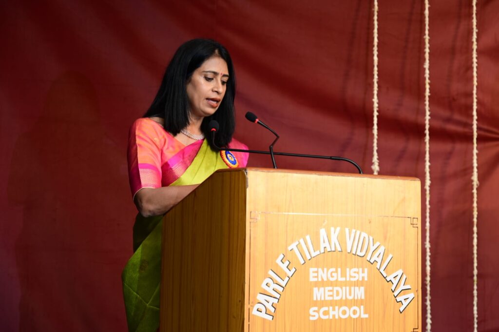 The occasion was graced by the presence of the Chief Guest, Lieutenant Colonel Bhushan Sharad Borse, an alumnus of Parle Tilak Vidyalaya English Medium School; the Honourable Treasurer of the parent body, the Parle Tilak Association, Shri B. S. Dhurandhar; the Headmistress of the Secondary Section, Mrs. Smita Biwalkar; and the Headmistress of the Primary Section, Mrs. Sunita Bhagwat. Their esteemed presence added dignity to the celebration and served as a source of inspiration and encouragement to the students and staff alike.
