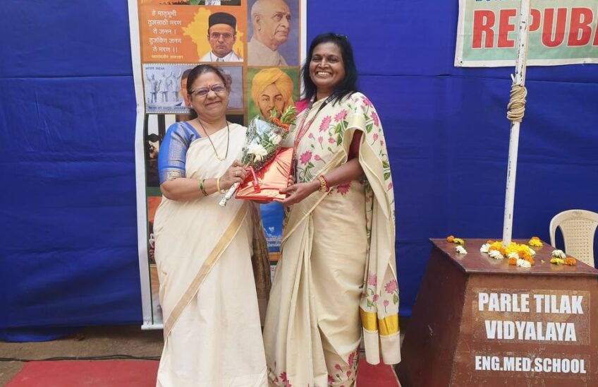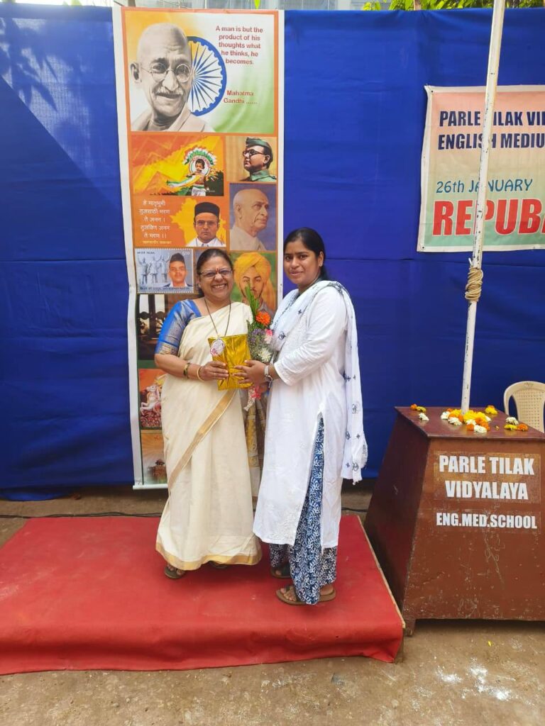 Parle Tilak Vidyalaya English Medium School (Secondary Section) expresses its sincere gratitude to the Parle Tilak Vidyalaya Association for its continued support and encouragement. Following the formal announcement of the launch of Digital Darpan, the school felicitated teachers Vinitha Nair, Sonia Mullick and Khushi Kapadia in recognition of their dedicated efforts in coordinating with staff and students to curate meaningful content. The mementoes and bouquets were presented by the Headmistress, Mrs Smita Biwalkar, who leads Team Darpan at PTVEMS under the Parle Tilak Vidyalaya Association.
