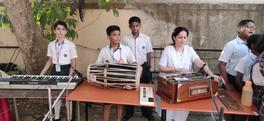 An Inter-House singing competition had been organised and the prize winning House, C.V. Raman presented their song: जयोस्तुते श्री महन्मंगले शिवास्पदे शुभदे – a beautiful composition by Swantraveer Savarkar. The programme ended with the felicitation of the prize winners of Individual and Group Singing Competitions. They received their certificates and prizes from our Headmistress Mrs. Smita Biwalkar. The art work for the programme was beautifully executed by our Art Teachers, Deputy Headmistress, Mrs. Yamini Dalvi and Ms. Beena Godambe. Pledging to work towards maintaining the unity and integrity of our country, as a school, on this auspicious day we strengthen our resolve to take our nation to greater heights of glory.
