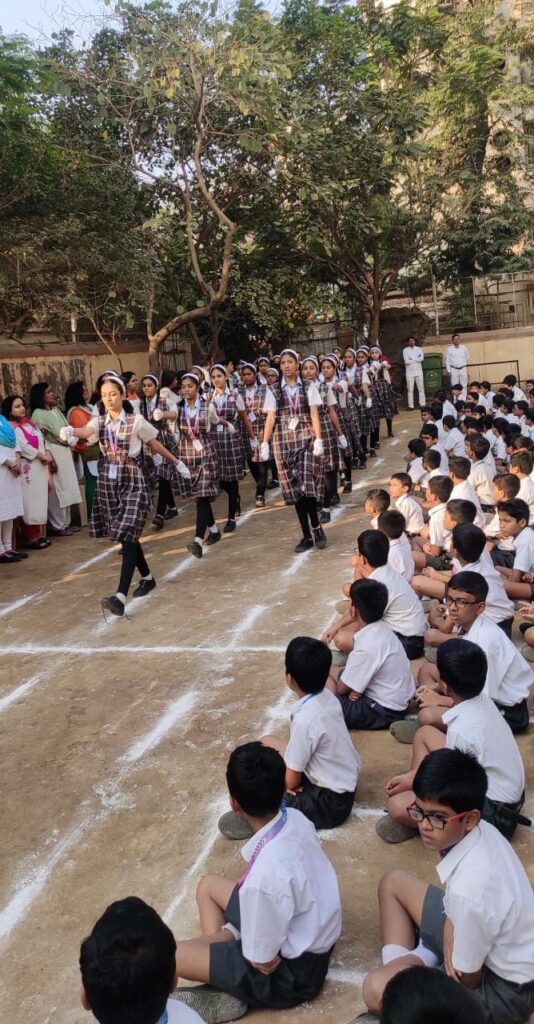 The Members of Board of Directors, Parle Tilak Vidyalaya Association, Shri. Anil Ganu and Vice-President Shri. Vinay Jog joined the Republic Day celebrations. Smt. Janhavi Khandekar Chief Coordinator, Parle Tilak Vidyalaya Association too was present. We also welcomed Shri. Nikhil Ballal, the founder of India’s first digital and print magazine KYT (Know Your Town), Executive Editor of Marathi Daily, Thane Vaibhav. Salute to the National Flag and the pledge were followed by the march past of the students of Std IX. President of Parle Tilak Vidyalaya Association, Shri. Anil Ganu Sir accepted the salute.
