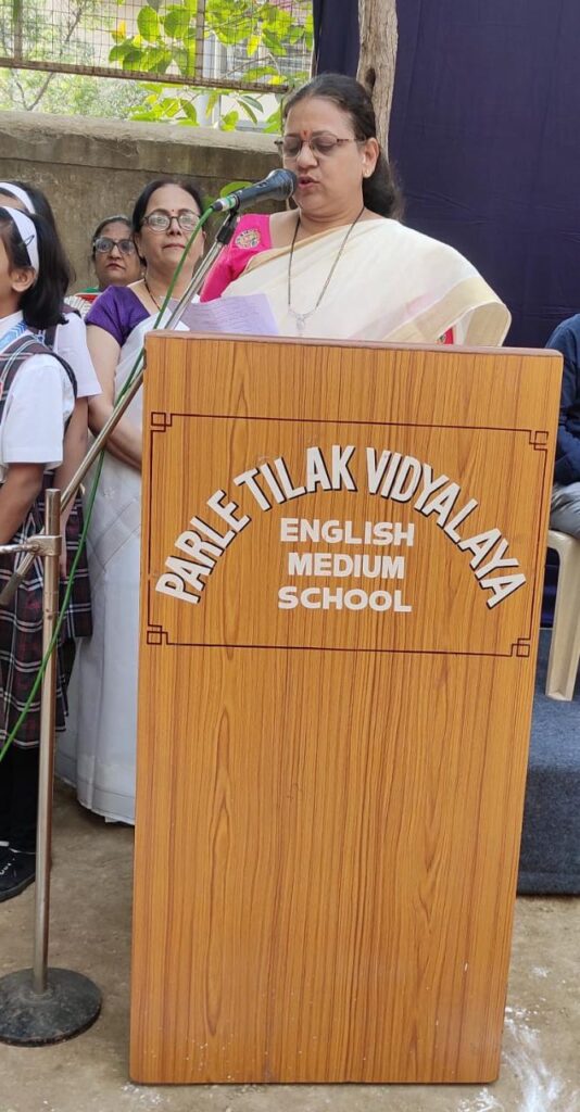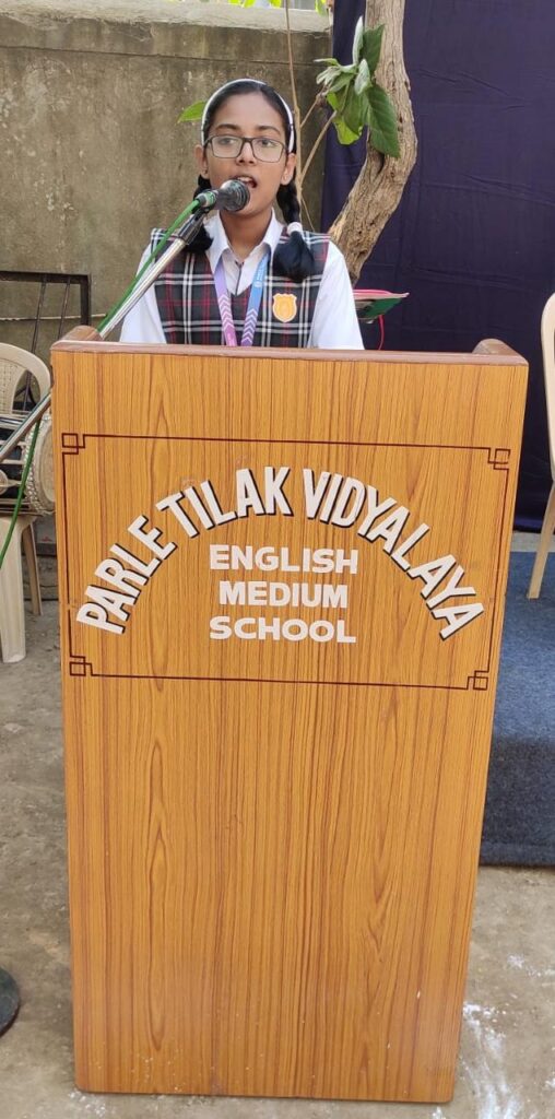 Our Parle Tilak Vidyalaya Association has published a newsletter – A unique and creative way to communicate with parents, teachers and all our stakeholders. A symphony of creative expressions, this special newsletter is a periodical which celebrates the magical moments witnessed in our Association’s institutions. It was released by President Shri. Anil Ganu Sir in the presence of Shri. Vinay Jog Sir, Shri. Nikhil Ballal and all the others present for the Republic Day celebrations. This was followed by a group song led by our school choir. The song ‘Hind Desh Ke Niwasi Sabi Jan Ek Hai’ which was sung by our students celebrates the beauty and significance of the Indian diversity. An inspiring speech was delivered by Mrs. Vandana Menon, Class Teacher of IX C. Teacher’s speech was followed by an impressive speech by our student from IX A, Ms. Shraddha Pradhan.