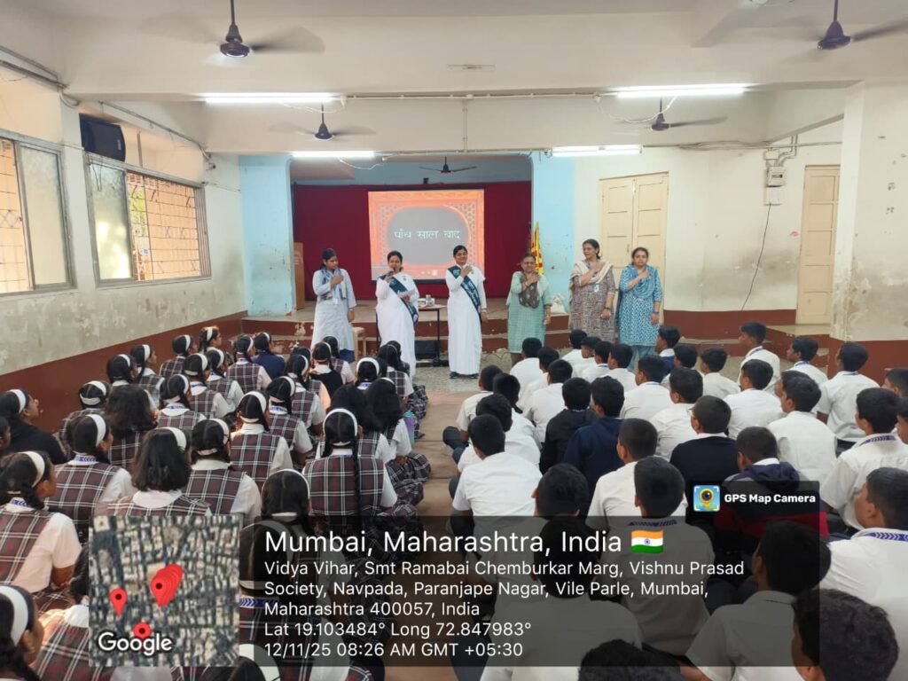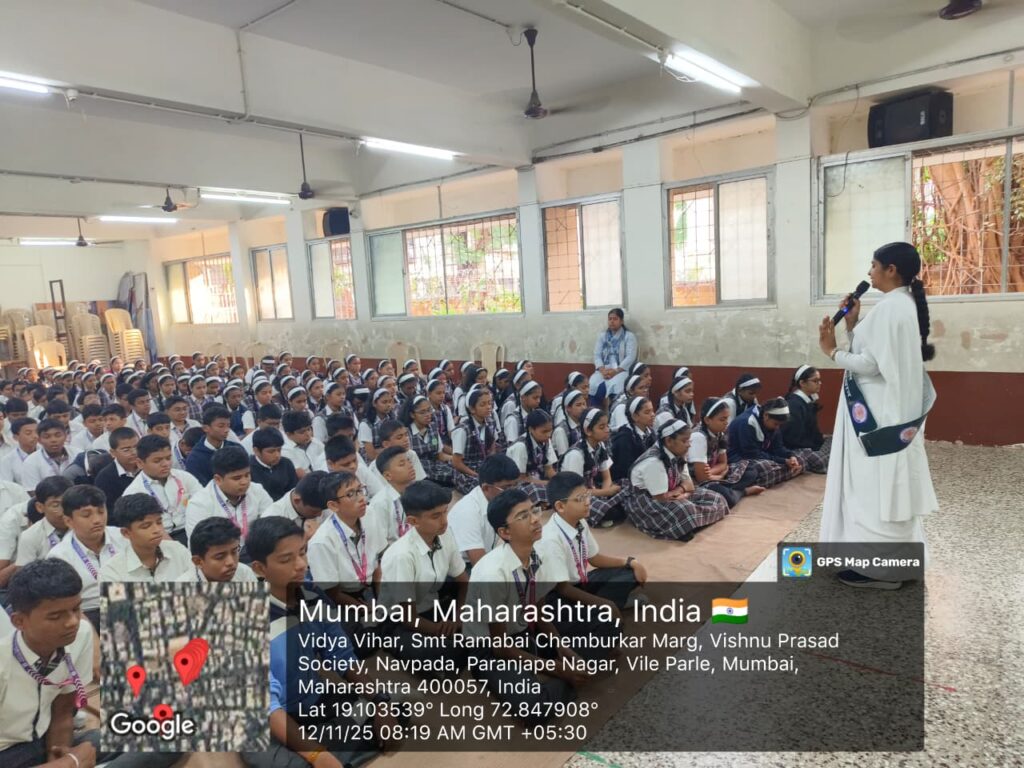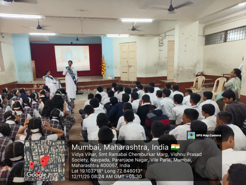 A seminar on Nasha Mukta Bharat was organised for the students of Std. IX on 12th November 2025 in the school hall during regular school hours. The seminar was conducted by the Brahma Kumaris in connection with the Nasha Mukti initiative. The drive was brought into force by the Government of India to create awareness and to work towards making the nation free from harmful and destructive habits.