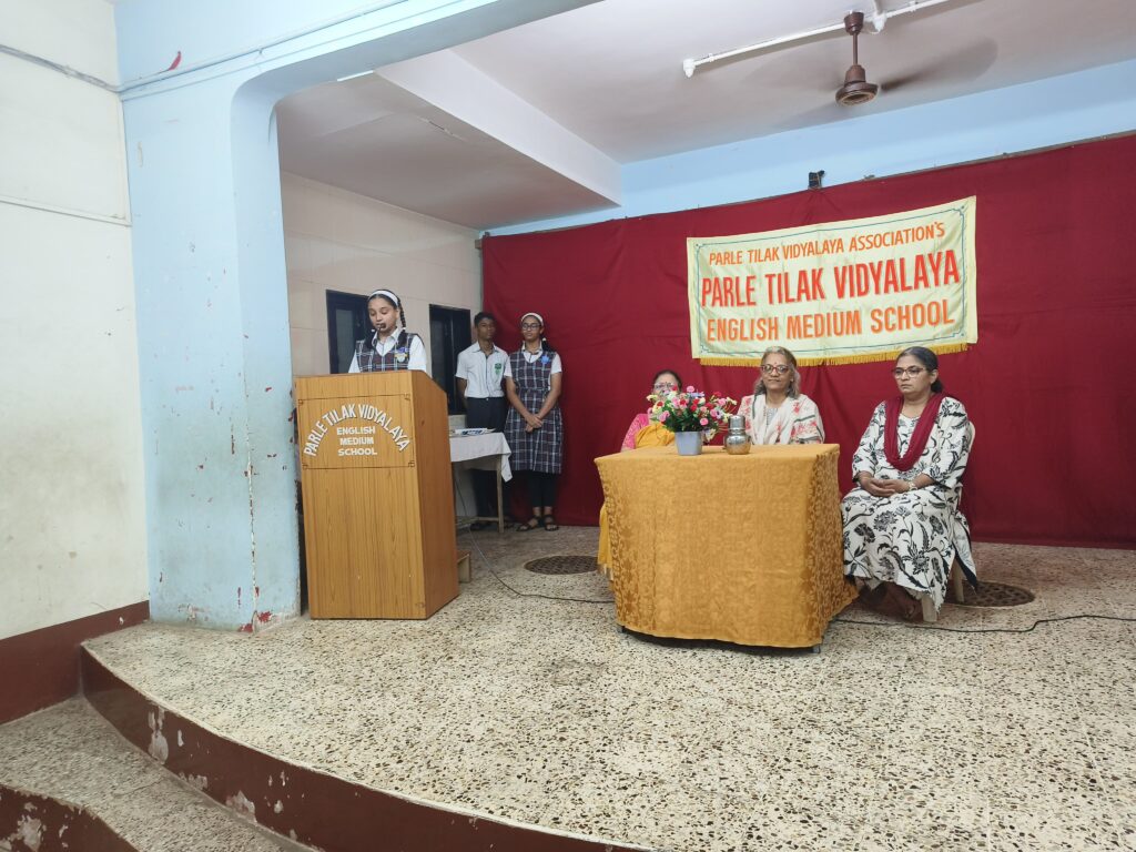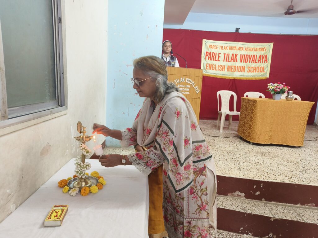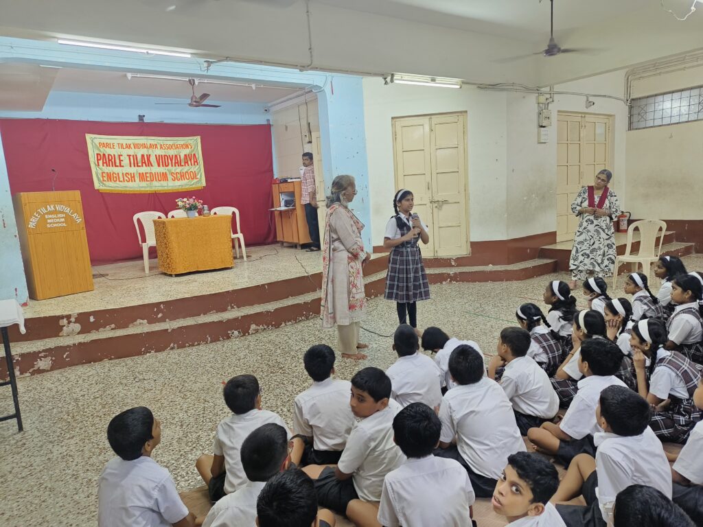 The inauguration ceremony of the Literary Club ‘Enrich’ was held on 25th July 2025 in the school hall, marking the beginning of a vibrant literary journey for the young learners of Parle Tilak Vidyalaya English Medium School (Secondary Section). The occasion was graced by the presence of Madam Mrs Medha Shastri, who was invited as the Chief Guest. Madam Shastri is currently serving as the In-charge of the English Department at Sathaye College, Vile Parle, Mumbai.
