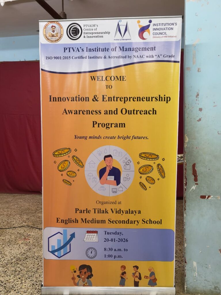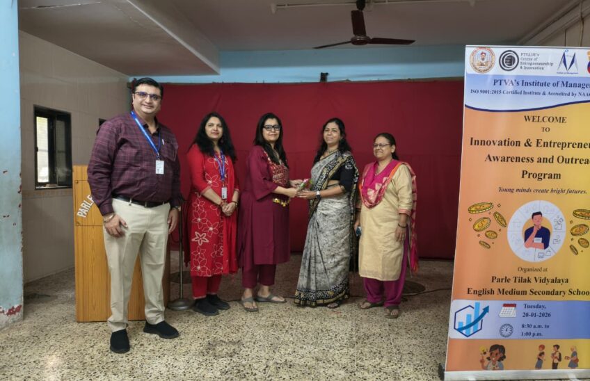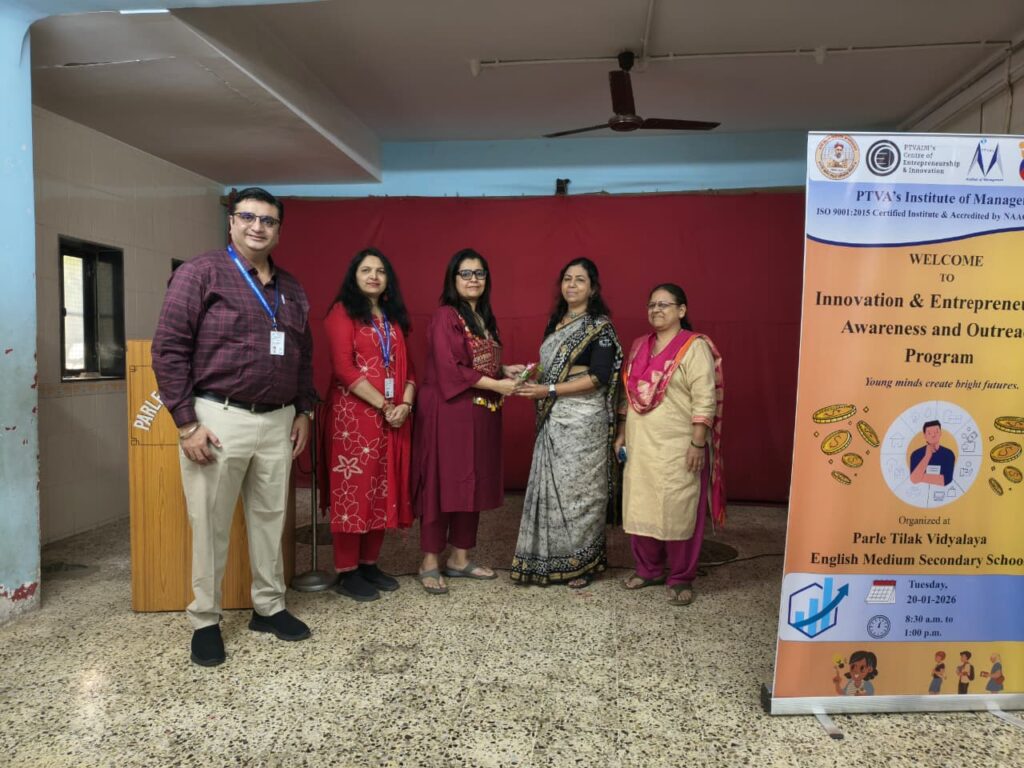 An Innovation and Entrepreneurship Awareness & Outreach Program was organised on 20th January 2026 at Parle Tilak Vidyalaya English Medium School (Secondary Section) by Parle Tilak Vidyalaya Association’s Institute of Management (PTVAIM).