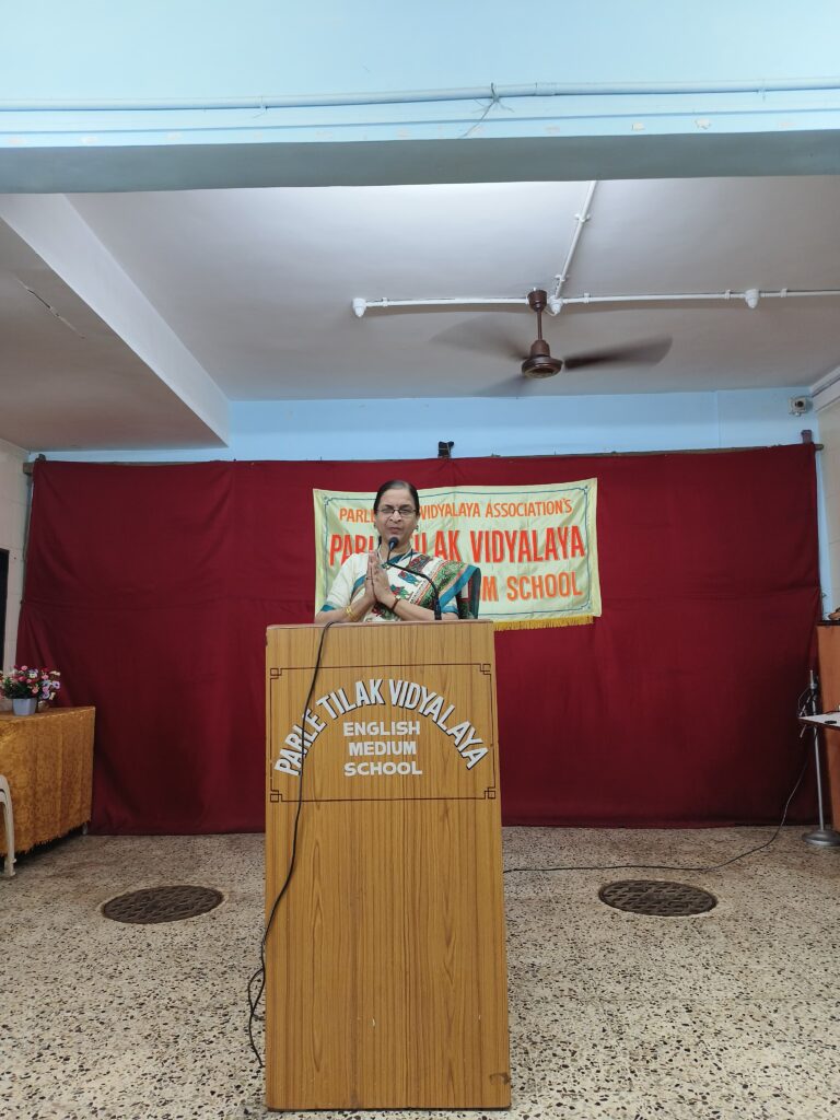 पार्ले टिळक विद्यालय इंग्लिश मिडीयम स्कूल या शाळेच्या मराठी वाङ्मय मंडळातर्फे दिनांक २५-८-२५ रोजी इयत्ता सातवीच्या विद्यार्थ्यांसाठी गणेश चतुर्थीनिमित्त गणेशकथा आणि संत रामदास यांच्या ‘मनाचे श्लोक‘ या विषयावरील कथा याद्वारे उद्बोधन कार्यक्रम आयोजित करण्यात आला होता. कार्यक्रमासाठी प्रमुख पाहुण्या म्हणून माननीय कीर्तनकार , लेखिका, निवेदिका आणि गायिका म्हणून प्रसिद्ध असलेल्या श्रीमती प्रणाली पटवर्धन लाभल्या होत्या.