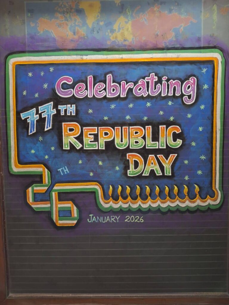 The theme of this year’s Republic Day celebration focused on commemorating 150 years of ‘Vande Mataram’ along with the vision of Aatmanirbhar Bharat, emphasising patriotism and self-reliance. To highlight this theme, Mrs Vandana Menon addressed the students and spoke about the significance of Republic Day and the responsibilities of citizens towards the nation.