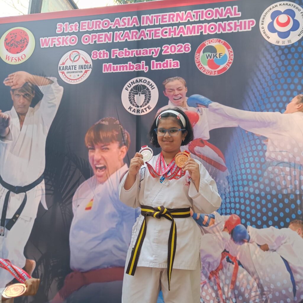 She also delivered an impressive performance at the 31st Euro–Asia International WFSKO Open Karate Championship organised by the World Funakoshi Shotokan Karate Organisation and held in Mumbai on 8th February 2026. In this championship, she secured: