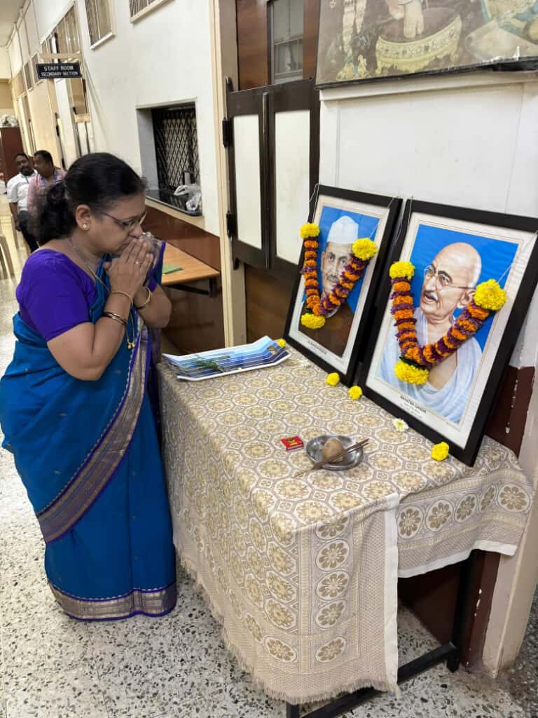 On 2nd October 2025, Parle Tilak Vidyalaya English Medium Secondary Section celebrated the birth anniversaries of Mahatma Gandhi and Lal Bahadur Shastri with great respect and enthusiasm.