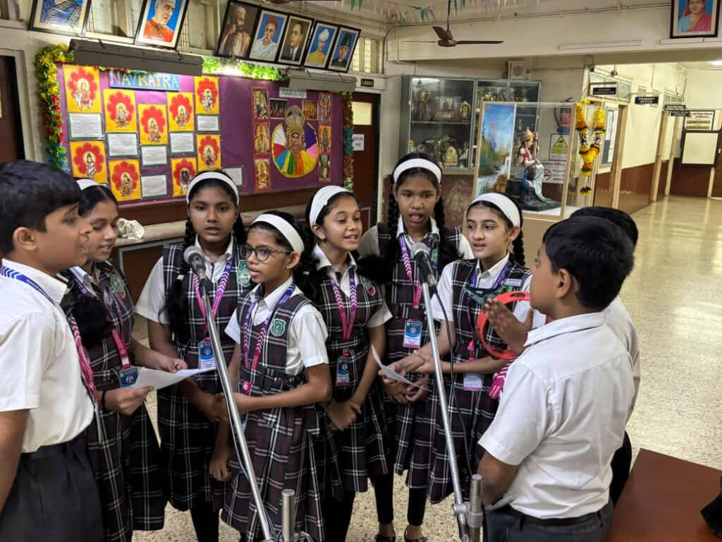 They were accompanied by Saanvi Phatak (8th C) on the Harmonium, Rudra Sawant (5th A) on the Tabla, and Aradhya Amkar (5th B) on the Khanjiri. The students were trained by Vrushali Virkar teacher. The performance created a patriotic atmosphere and was deeply appreciated by everyone present.