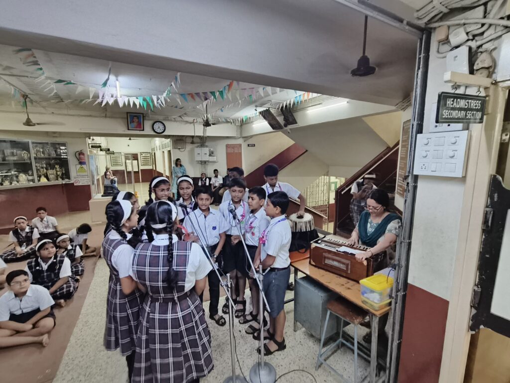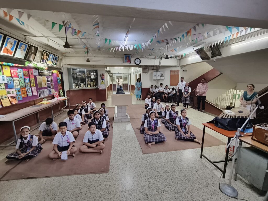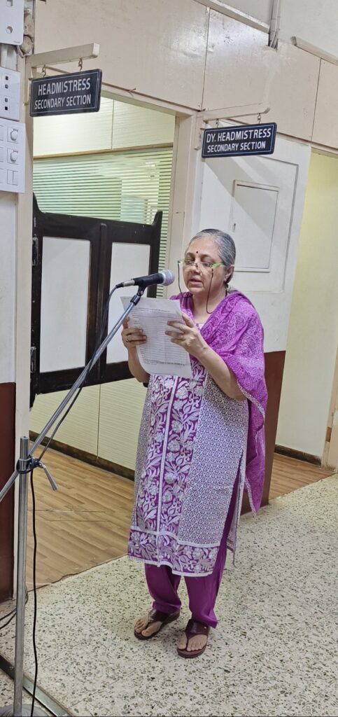 The morning began with a floral tribute offered by our Headmistress Mrs. Smita Biwalkar to the photo frame of Lokmanya Bal Gangadhar Tilak. This simple gesture marked the beginning of a thoughtful and well-organised event. The programme was compered by our teacher Mrs. Kalpana Ved whose reflections on Lokmanya Bal Gangadhar Tilak’s life helped students understand Lokmanya Tilak’s contributions to our motherland.