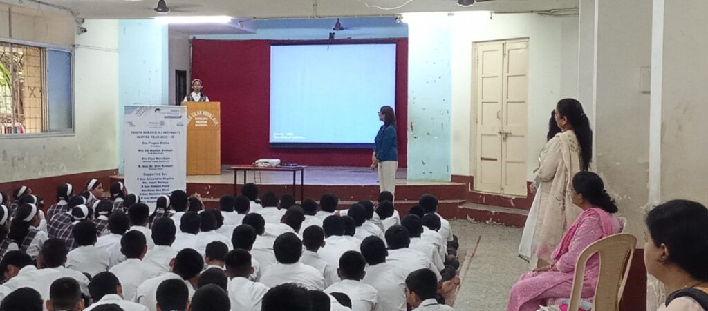 The session was organised for the students of Standard 8, who were assembled in the school hall to attend the programme. A formal introduction of the guest speaker was given by Ms. Asmi Shetiya, the President of the school’s Interact Club for the academic year.