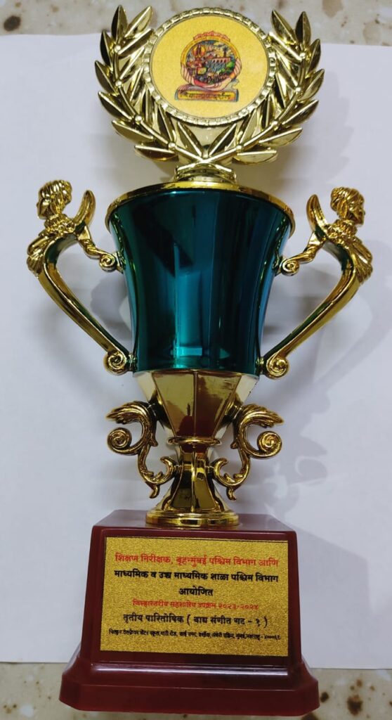 Our student, Master Shreyan Gaonkar from Std. – 7 D, secured the 3rd place in instrumental music at the zonal level competition held at Purushottam High School, Kherwadi, Bandra East. The prize distribution took place at Children Welfare School in Versova, Andheri West. The prize was presented by Mr. Deepak Sawant, former Minister of Public Health of Maharashtra.