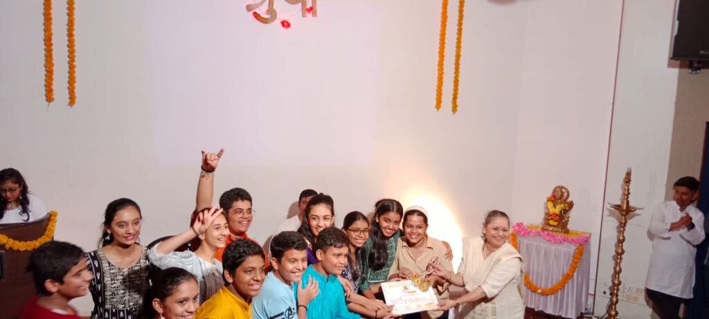 In senior drama, we bagged again the First Prize. Participants were Arya Warty, Malhar Joshi, Divyangana Desai, Swanandi Kandalkar, Shantanu Bedekar, Avani Walke.