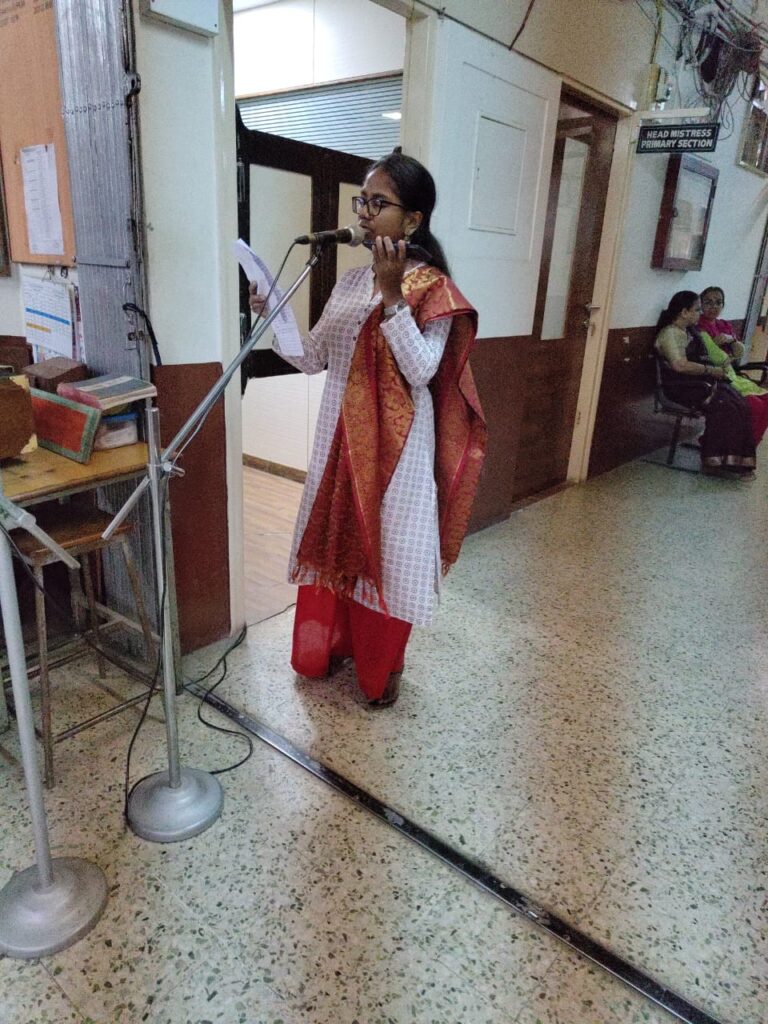 This was followed by the beautiful rendition of the song : खबरदार जर टाच मारुनी जाल पुढें, चिंधड्या- उडविन राइ राइ एवढ्या! by our student Miss. Paalvi Vedpathak. (VIII D)